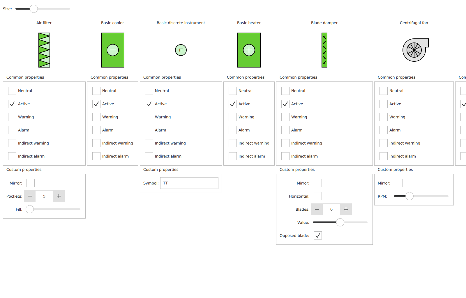 Gallery of HVAC symbols provided by CuteHMI.Symbols.HVAC.1 extension.