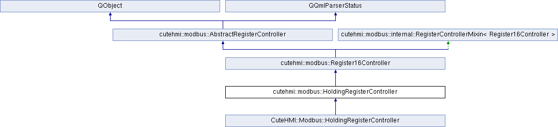 cutehmi::modbus::Register16Controller cutehmi::modbus::AbstractRegisterController cutehmi::modbus::internal::RegisterControllerMixin< Register16Controller > QObject QQmlParserStatus CuteHMI::Modbus::HoldingRegisterController