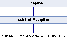 Inheritance diagram for cutehmi::ExceptionMixin< DERIVED >: