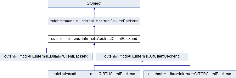 Inheritance diagram for cutehmi::modbus::internal::AbstractClientBackend: